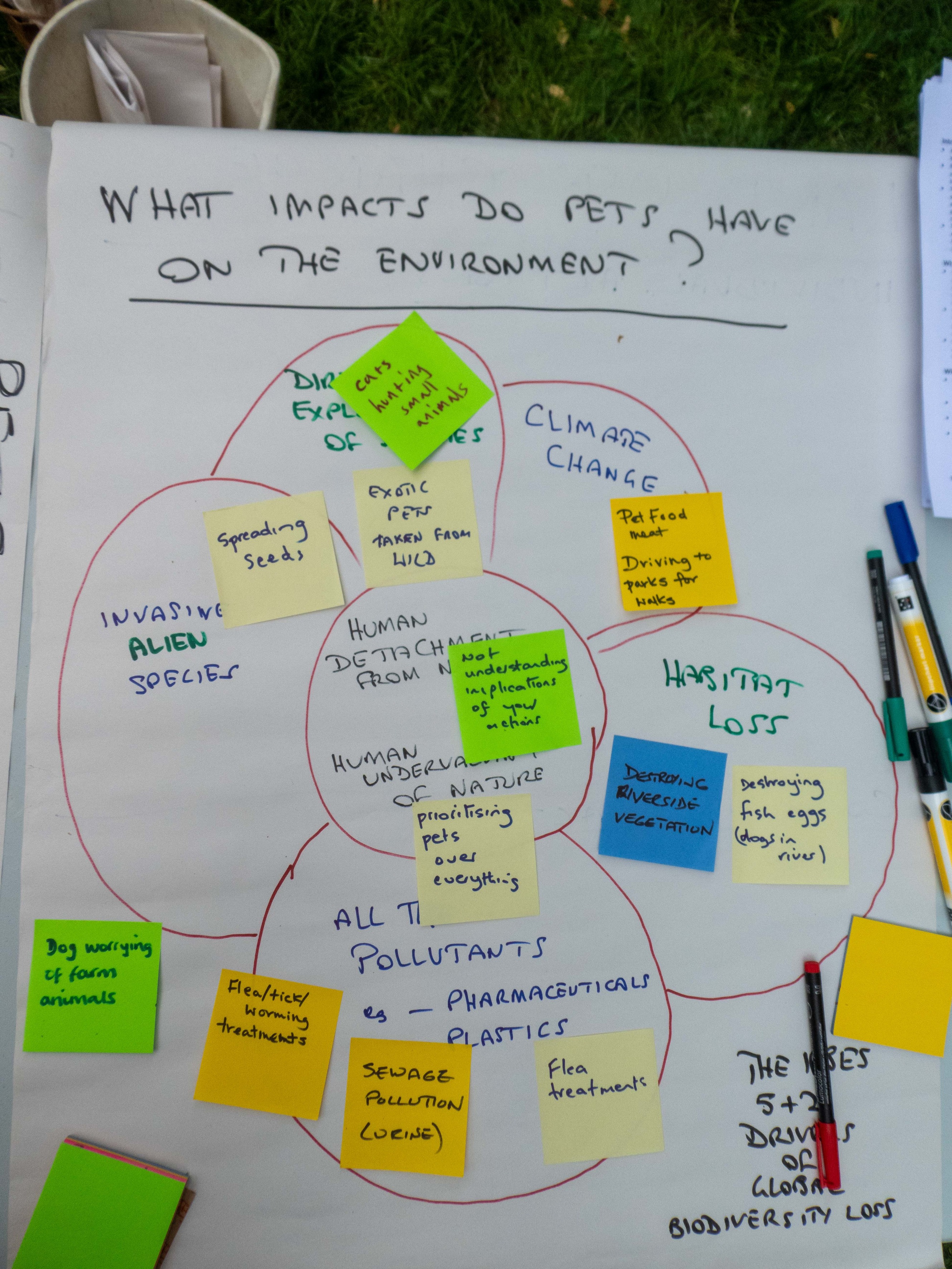 What impacts do pets have on the environment? An accumulating brainstorm with participants given post-its and asked to add points to a diagram representing the IPBES 5+2 drivers of global biodiversity loss.