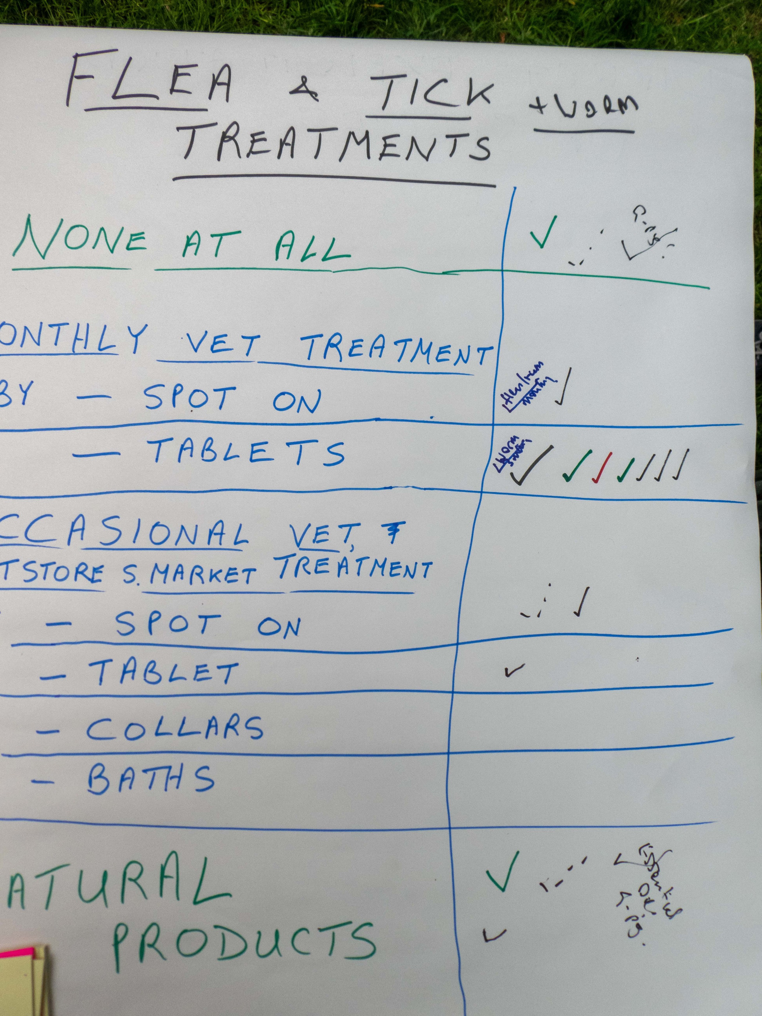 How do you currently manage parasites on your pet, what products do you use and where from? People were asked to tick the relevant line or use the options to explain what they do.