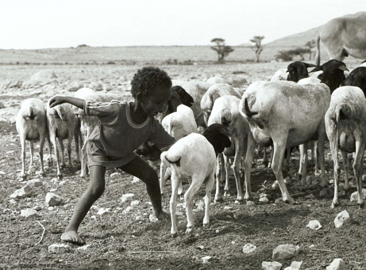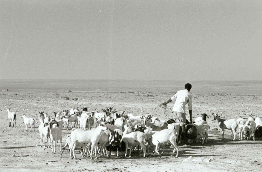 Camels are not the only livestock kept by Somali pastoralists. They also rear cattle, goats, sheep and donkeys. The Somali black-headed sheep are a type of fat-tailed sheep that are very adapted to dry areas. There are of course many stories explaining why the head of these sheep is black and the body white, though nobody seems to know the real reason.