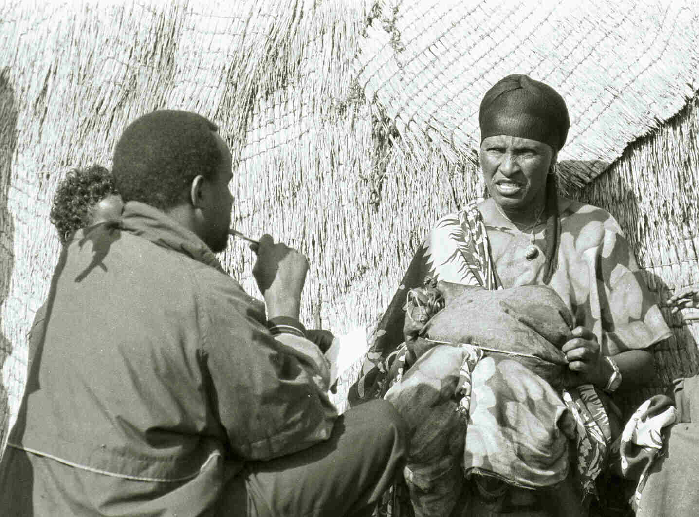 The following two pictures were taken after Somali veterinarians had been trained in community participation skills. Here, a Somali veterinarian interviews a woman in Jare, eastern Ethiopia.