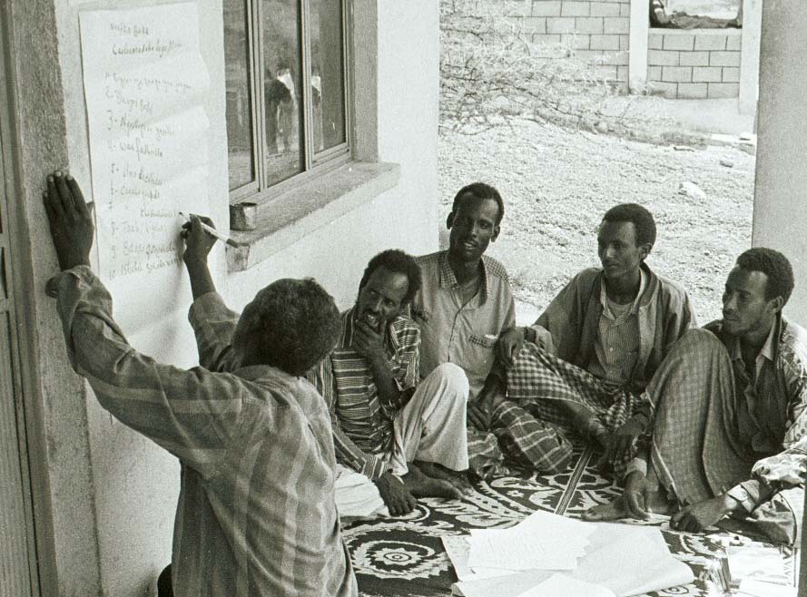 One advantage of participatory work with communities is that it can be conducted anywhere and doesn’t require special equipment. In the picture above a group of herders near a remote well in Somaliland try to decide which disease affecting their livestock are the most important.